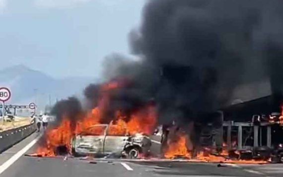 Σύμφωνα με πληροφορίες από αυτόπτες μάρτυρες, το ένα από τα δύο αυτοκίνητα ακινητοποιήθηκε ξαφνικά, για άγνωστους μέχρι στιγμής λόγους. Το φορτηγό έπεσε με μεγάλη ταχύτητα πάνω στο τελευταίο αυτοκίνητο. Η φωτιά που προκλήθηκε στο εγκλωβισμένο ΙΧ ανάμεσα στα δύο οχήματα, επεφύλαξε φριχτό θάνατο σε τρεις από τους τέσσερις επιβάτες.