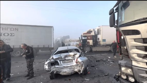 Στο σημείο από τις πρώτες πρωινές ώρες υπάρχει πυκνή ομίχλη, η οποία δυσχέρανε την ορατότητα των οδηγών με αποτέλεσμα να σημειωθεί η σύγκρουση. Βίντεο από το σημείο της σύγκρουσης δείχνει ότι έχουν εμπλακεί και φορτηγά, ενώ ορισμένα από τα οχήματα έχουν υποστεί σοβαρές ζημιές.