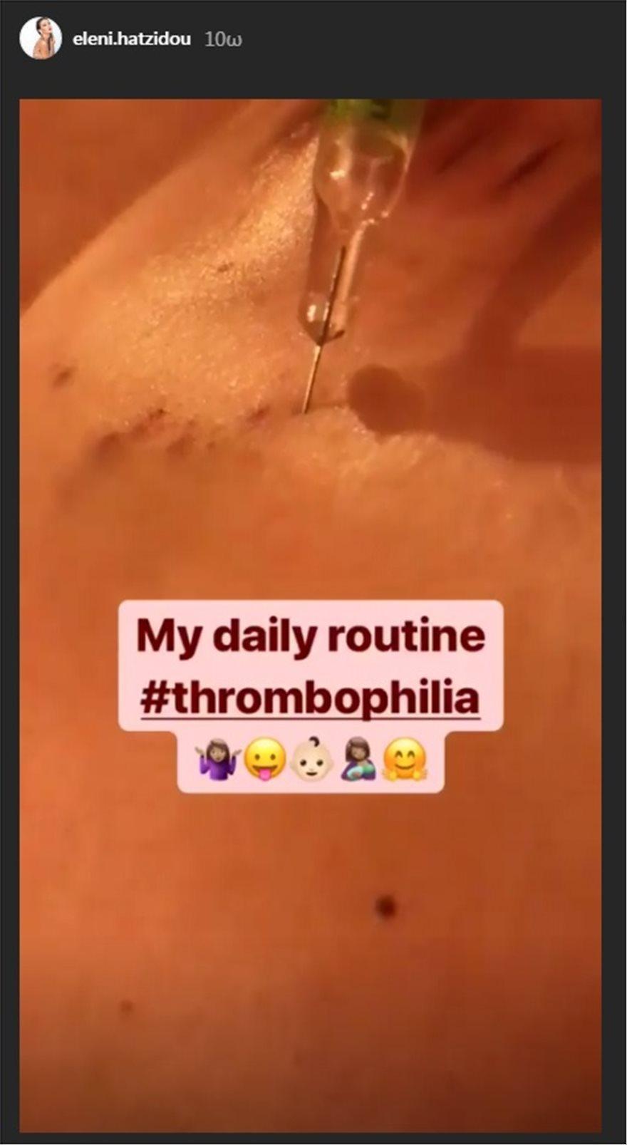 «Ξέρετε τι είναι αυτό; Αντιπηκτική ένεση για τις εγκυμονούσες που έχουν θρομβοφιλία. Μία κάθε μέρα για εννέα μήνες. Μη σας φοβίζει, σημασία έχει να είναι καλά το μπεμπέ… Θυμώνω που μου λέτε πως έχετε χάσει μωράκια επειδή ο γιατρός σας δεν σας έστειλε για τις σωστές εξετάσεις ώστε να μάθετε ότι έχετε θρομβοφιλία… Εγώ το ανακάλυψα πριν ακόμη μείνω έγκυος», είχε γράψει τότε στα social media.