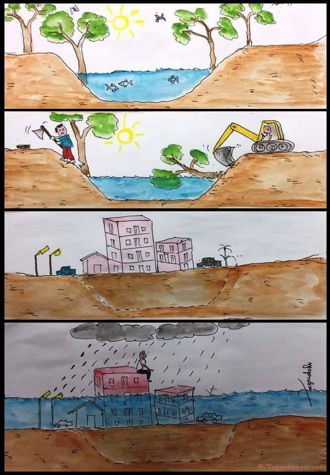 Ένα σκίτσο που κυκλοφορεί αυτή την στιγμή στο διαδίκτυο κάνει αίσθηση μιας και περιγράφει την κατάσταση που επικρατεί πριν και μετά την φονική κακοκαιρία που χτύπησε την χώρα μας. Το σκίτσο συγκεκριμένα δείχνει τις καταστροφικές συνέπειες της φύσης όταν ο άνθρωπος επεμβαίνει χωρίς σεβασμό σε αυτή.