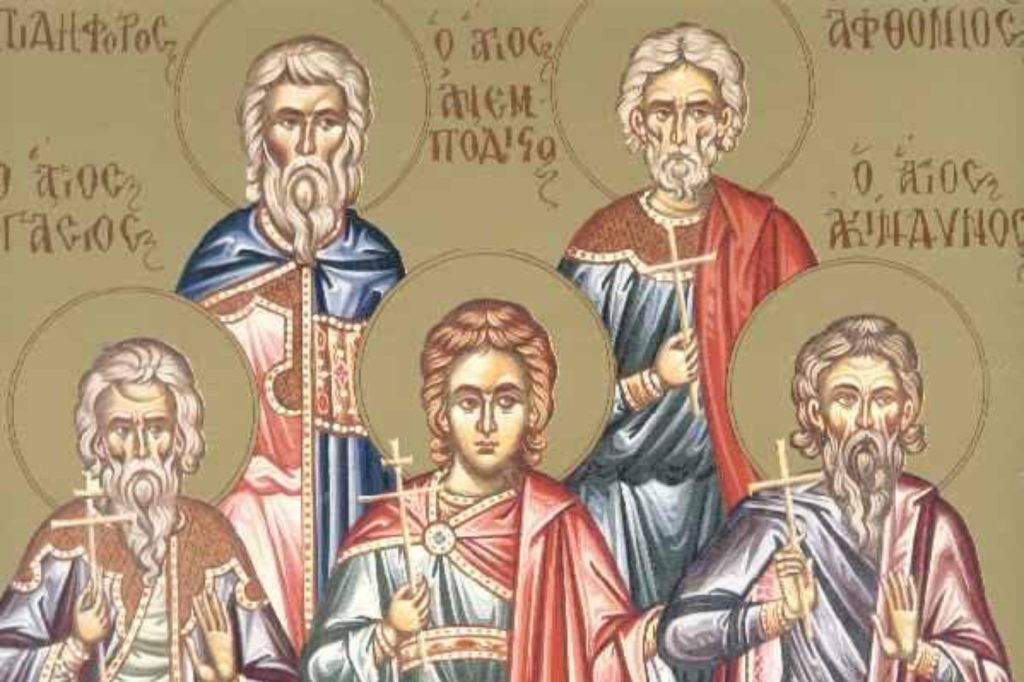 Σήμερα γιορτάζουν οι: Ακίνδυνος, Ακίνδυνη Ανεμπόδιστος, Ανεμπόδιστη Αφθόνιος, Αφθονία Ελπιδηφόρος, Ελπιδοφόρος, Ελπιδηφόρα, Ελπιδοφόρα Πήγασος, Πηγάσιος, Πηγασία Ακίνδυνου Αφθονίου Ελπιδοφόρου Πηγασίου και Ανεμποδίστου των Μαρτύρων