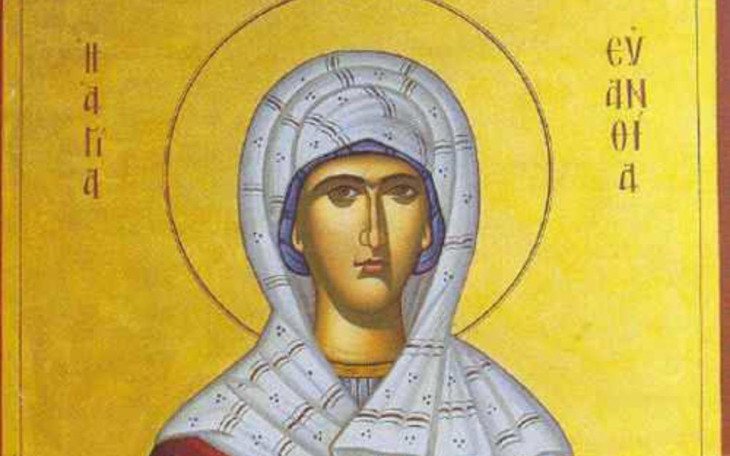 Σήμερα γιορτάζουν οι: Ευανθία, Εύα, Ευάνθης Ευφρόσυνος, Φρόσυνος Αγίας Ευανθίας μάρτυρος, Οσίου Ευφροσύνου του μαγείρου, Αγια Θεοδωρα η εν Βαστα