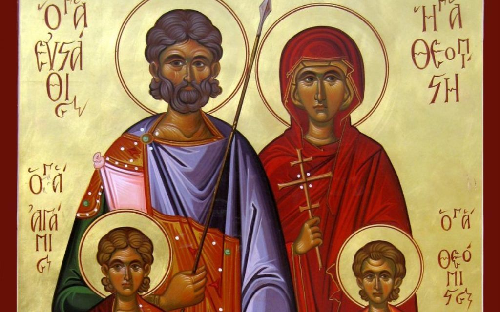 Σήμερα γιορτάζουν οι: Ευστάθιος, Στάθης, Σταθάς, Σταθάκος, Ευσταθία, Σταθούλα, Σταθία, Ευσταθούλα Θεοπίστη, Πίστη, Θεόπιστος Ευσταθίου μεγαλομάρτυρος και συνοδείας: Θεοπίστης Αγαπίου και Θεοπίστου