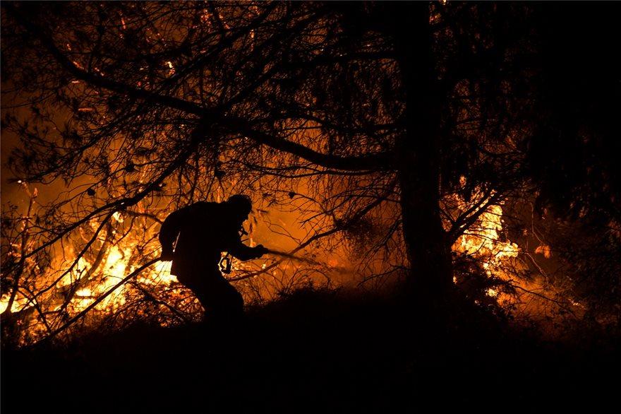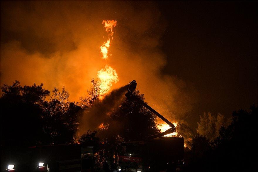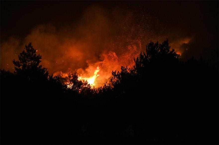 Την νύχτα, αναζωπυρώσεις σημειώθηκαν έξω από τα χωριά Μακρυμάλλη και Πλατάνια, όμως οι πυροσβέστες κατόρθωσαν να περιορίσουν και αυτές τις εστίες. Στην Πλατάνια εξάλλου στήθηκε την νύχτα ένα πρόχειρο επιχειρησιακό κέντρο, από όπου και έγινε ο συντονισμός των δυνάμεων κατά την διάρκεια της νύχτας.