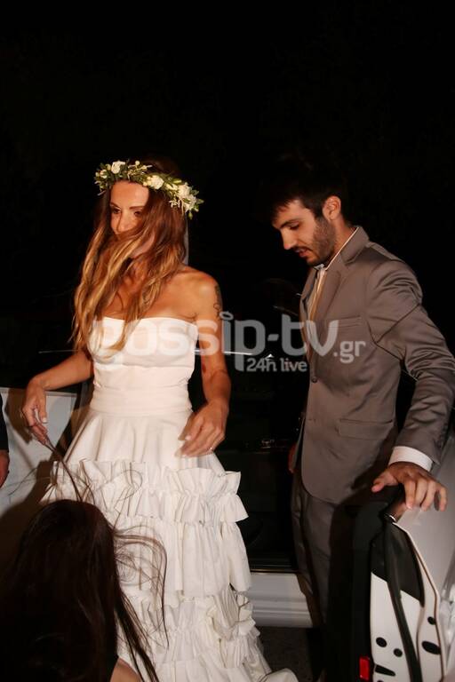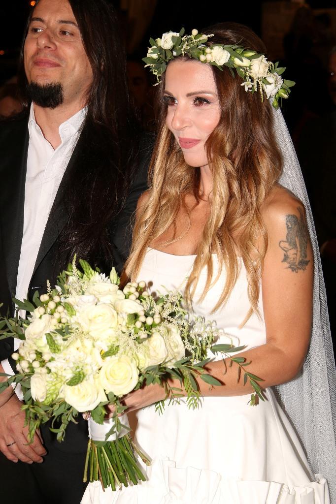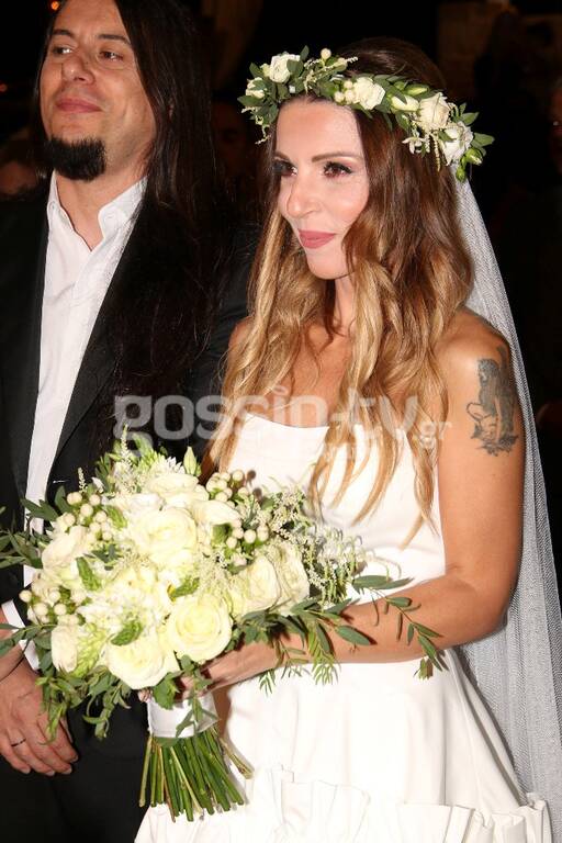 Η νύφη έλαμπε μέσα στο υπέροχο και ρομαντικό νυφικό της τραγουδίστριας που ήταν δημιουργία του Στέλιου Κουδουνάρη ο οποίος είναι και προσωπικός της φίλος.