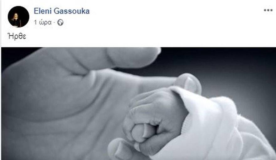 Να τους ζήσει! Γέννησε το πρωί της Κυριακής η Φωτεινή Αθερίδου. Η νεαρή ηθοποιός πλέει σε πελάγη ευτυχίας αφού έφερε στη ζωή το πρώτο της παιδί. Την αποκάλυψη πως η κόρη του Θοδωρή Αθερίδη γέννησε, την έκανε η μητέρα της, Ελένη Γκασούκα, μέσα από τον προσωπικό της λογαριασμό στο Facebook, η οποία δεν μπορεί να κρύψει τη χαρά της που έγινε γιαγιά.