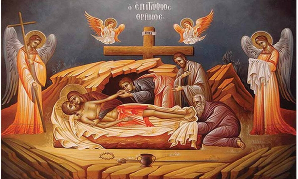 Αι γενεαί πάσαι, ύμνον τη Ταφή Σου, προσφέρουσι Χριστέ μου. Καθελών του ξύλου, ο Αριμαθείας, εν τάφω Σε κηδεύει. Μυροφόροι ήλθον, μύρα σοι, Χριστέ μου, κομίζουσαι προφρόνως. Δεύρο πάσα κτίσις, ύμνους εξοδίους, προσοίωμεν τω Κτίστη. Ούς έθρεψε το μάννα, εκίνησαν την πτέρναν, κατά του ευεργέτου. Ιωσήφ κηδεύει, συν τω Νικοδήμω, νεκροπρεπώς τον Κτίστην.