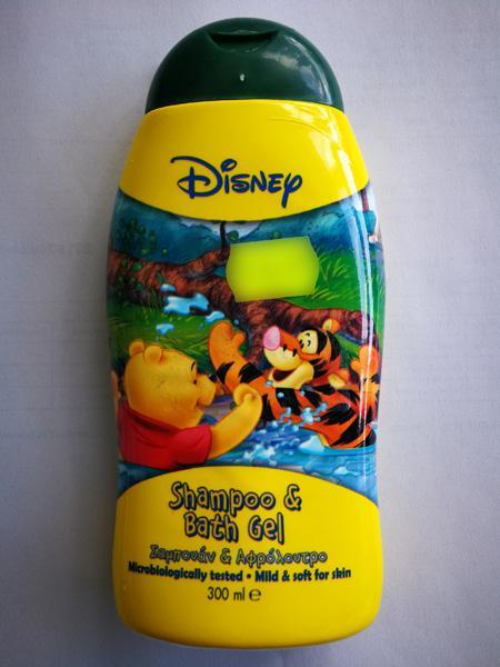 Ονομασία: Shampoo & Bath Gel. 300 ml σαμπουάν και αφρόλουτρο σε φιάλη από πλαστική ύλη κίτρινου χρώματος με σκούρο πράσινο πώμα, με εικόνα των χαρακτήρων της Disney Winnie the Pooh και Tiger.