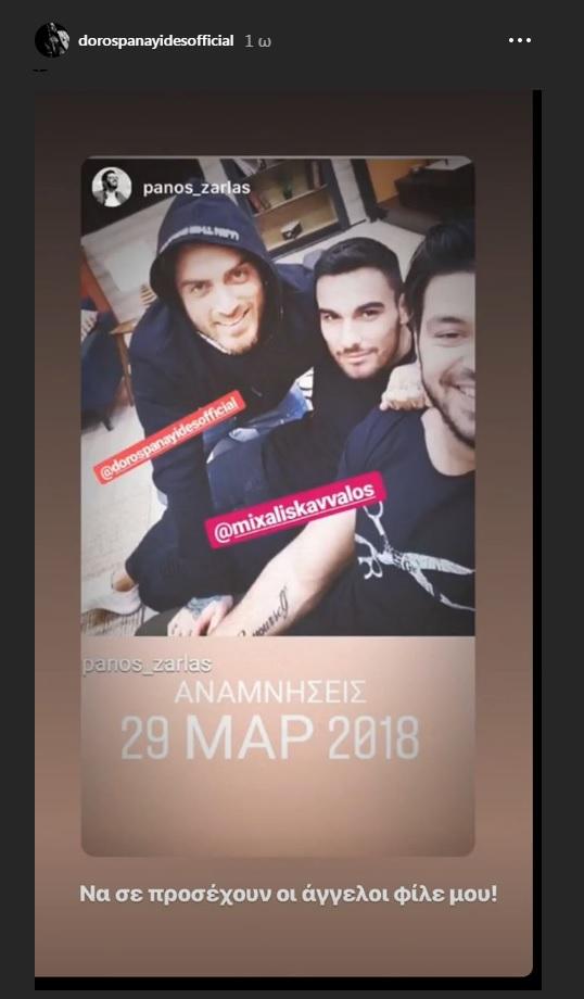 Οι φίλοι του και όσοι τον γνώριζαν προσωπικά είναι συγκλονισμένοι από το τραγικό γεγονός. Μάλιστα, δεν είναι λίγο εκείνοι που θέλησαν να τον αποχαιρετήσουν μέσα από τα social media. Ένας από αυτούς ήταν και ο πρώην συμπαίκτης του στο POL, Δώρος Παναγίδης. Χωρίς να κρύψει το σοκ του στο άκουσμα της δυσάρεστης είδησης, δημοσίευσε στα InstaStories του μια κοινή φωτογραφία τους, σχολιάζοντας: «Δεν έφυγες, μας κάνουν πλάκα. Δε γίνεται να έφυγες τόσο νωρίς» .