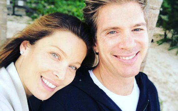 Η γαλάζια από μουσελίνα τουαλέτα αγκάλιαζε τη σιλουέτα του πανέμορφου μοντέλου, το οποίο φαινόταν πιο ευτυχισμένο από ποτέ στην αγκαλιά των αγαπημένων της.