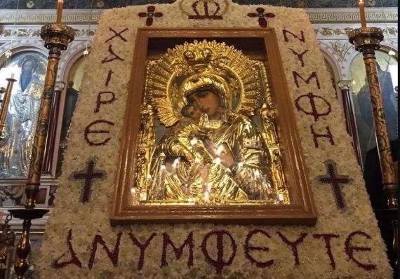 Χαίρε, καλή κουροτρόφε παρθένων. Χαίρε ψυχών νυμφοστόλε αγίων. Χαίρε, Νύμφη ανύμφευτε.