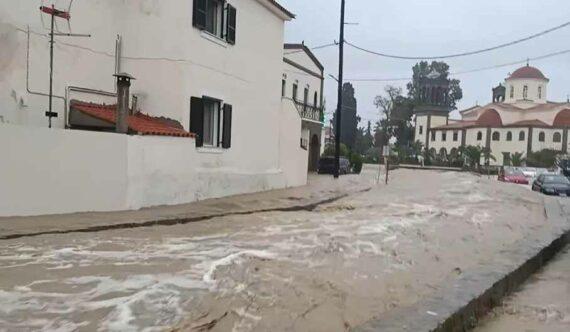 Πλημμυρισμένοι δρόμοι, ήχησε το 112.Σοβαρά προβλήματα στο νησί λόγω του μεγάλου όγκου νερού. Στη Μύρινα ξεχείλισε το ποτάμι της περιοχής και πλημμύρισαν σπίτια. Παράλληλα ξεχείλισε και το ρέμα της Μητρόπολης.