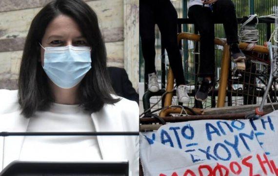 Αναφερόμενη στις καταλήψεις, η υπουργός τόνισε ότι δε νοείται μια μειοψηφία να κλείνει τα σχολεία και να σταματά την εκπαιδευτική διαδικασία.