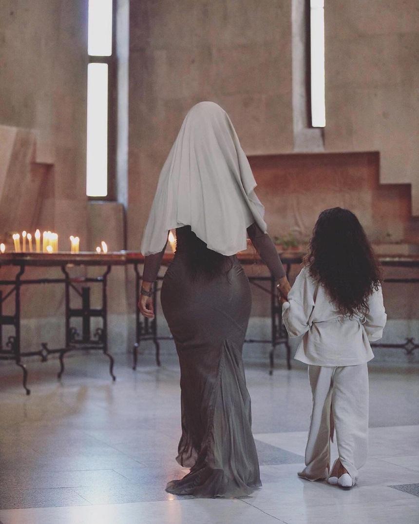 Η Kim Kardashian δημοσίευσε φωτογραφίες στον λογαριασμό της στο Instagram, όπου την βλέπουμε να φορά ένα στενό φόρεμα σε γοργονέ γραμμή και να ποζάρει με την κόρη της North μέσα στον Ναό. «Ευχαριστώ Αρμενία για αυτό το τόσο αξέχαστο ταξίδι. Νιώθω ευλογημένη που βαφτίστηκα μαζί με τα παιδιά μου στην “μητέρα του Ετσμιατζίν”, τον βασικό καθεδρικό ναό που συχνά αποκαλείται ως το Βατικανό της αρμένικης αποστολικής εκκλησίας. Αυτή η εκκλησία χτίστηκε το 303 μ. Χ.» σημείωσε η διάσημη τηλεπερσόνα.