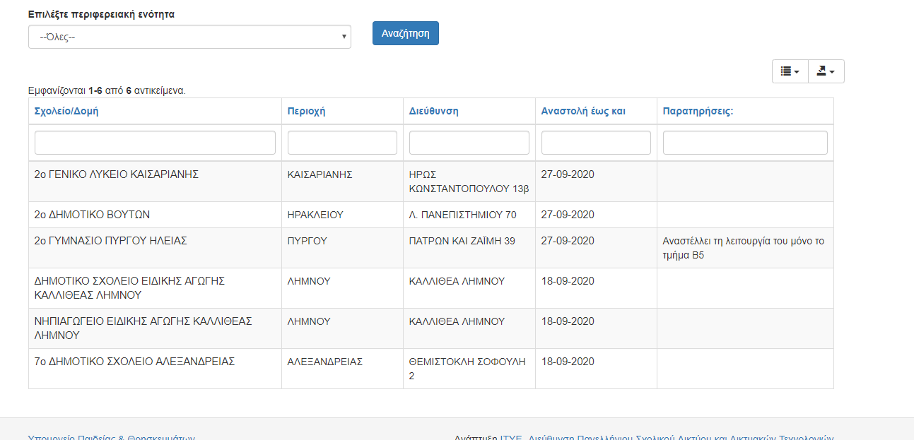 Κλειστά λόγω κορονοϊού είναι τα ακόλουθα σχολεία μέχρι τις ημερομηνίες που αναγράφονται.