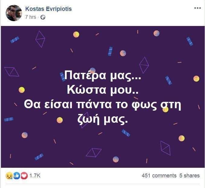 «Πατέρα μας, Κώστα μου θα είσαι πάντα το φως στη ζωή μας».