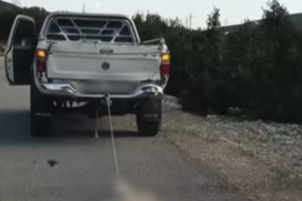 Το φρικιαστικό περιστατικό καταγράφηκε από το κινητό ενός μάρτυρα, ο οποίος ακολουθούσε το αγροτικό για 15 λεπτά, κάνοντας νοήματα στον οδηγό να σταματήσει.