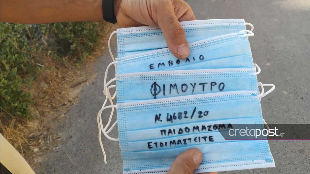 Στην Κρήτη, στο Δημοτικό των Γουρνών, γονείς εμφανίστηκαν με μάσκες – πανό. Έγραψαν πάνω στις μάσκες συνθήματα και δήλωσαν αποφασισμένοι να μην στείλουν τα παιδιά τους στο σχολείο εξαιτίας της χρήσης μάσκας.