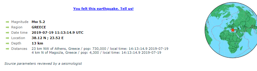 Ο σεισμος εχεί επικεντρο το ρηγμα της Παρνηθας, 12χλμ αισθιακο βάθος, Πιο συγκεκριμένα, οι πρώτες εκτιμήσεις αναφέρουν πως το επίκεντρο του σεισμού ήταν η Μαγούλα και πιο συγκεκριμένα σε απόσταση 3 χλμ. εμείς στη Χαλκίδα το νιώσαμε για τα καλα καλα!!!! 15” τουλάχιστον διάρκεια.