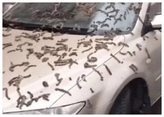 Ένα μυστήριο φαινόμενο έχει γίνει viral Σκουλήκια πέφτουν από τον ουρανό και έχουν πανικοβάλει το κόσμο. Τα γλοιώδη αυτά έντομα, κάλυψαν αυτοκίνητα και ανάγκασαν τους πεζούς να πάρουν ομπρέλες ή να ψάχνουν να βρουν καταφύγιο, για να προστατευτούν.