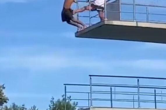 Τον απόλυτο τρόμο βίωσε ένας άντρας όταν έπεσε από βατήρα 10 μέτρων σε πισίνα στην Αυστρία, δίχως να το θέλει. Ο λόγος της πτώσης του ήταν το βίαιο και ανύποπτο σπρώξιμο ενός ναυαγοσώστη.