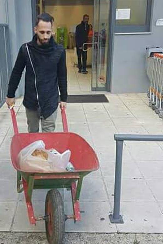 Και επειδή των φρονίμων τα παιδιά πριν πεινάσουν μαγειρεύουν… έτσι και ο Άγγελος, για να μην αναγκαστεί να αγοράσει τις πλαστικές σακούλες του καταστήματος είχε πάρει μαζί του ένα καρότσι οικοδομής για να τοποθετήσει τα ψώνια του μέσα σε αυτό.