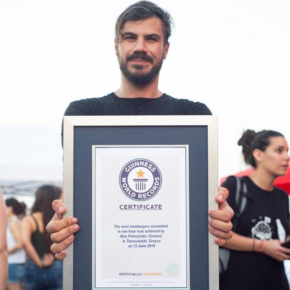 Στη Θεσσαλονίκη για ένα ξεχωριστό challenge βρέθηκε ο Άκης Πετρετζίκης, ο οποίος μαζί με την ομάδα του και περίπου 150 άτομα, κλήθηκε να φτιάξει όσα περισσότερα hamburgers μπορούσε σε διάστημα μιας ώρας. Και όχι απλά hamburgers, αλλά… υπερφουσκωμένα, καθώς θα έπρεπε να έχουν εννέα στρώσεις.