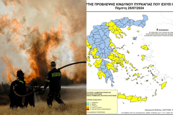 Δείτε στο χάρτη τις περιοχές που αντιμετωπίζουν κίνδυνο σήμερα, Πέμπτη 25 Ιουλίου