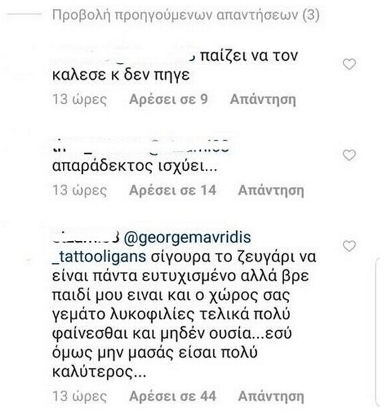 Κάτω από ένα από τα γαμήλια post στο instagram τέθηκε το θέμα της πρόσκλησης ή μη του Μαυρίδη στο γάμο και ο Γιώργος ξεκαθάρισε στον διάλογο με τους ακολούθους ότι δεν πήγε γιατί δεν τον κάλεσαν και όχι επειδή τον κάλεσαν και επέλεξε να μην πάει.