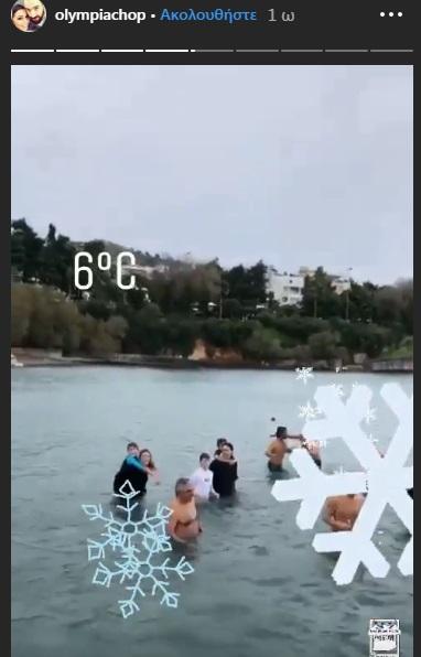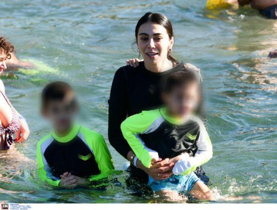 Βρίσκεται στον τελευταίο μήνα της 6ης εγκυμοσύνης της, αλλά η σύζυγος του Βασίλη Σπανούλη, Ολυμπία Χοψονίδου, δεν δίστασε -παρά το τσουχτερό κρύο- να βουτήξει στα παγωμένα νερά για να πιάσει το σταυρό, ανήμερα των Θεοφανείων.