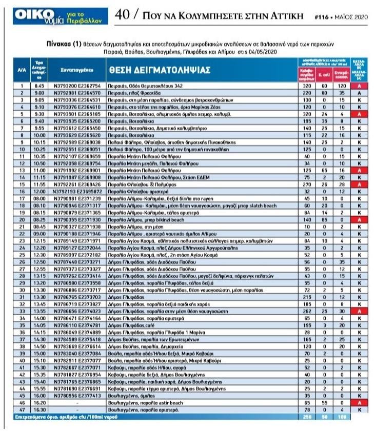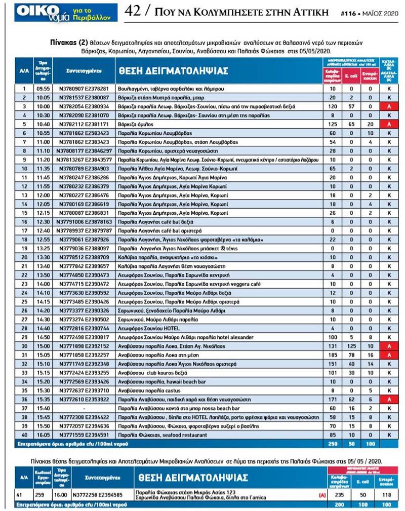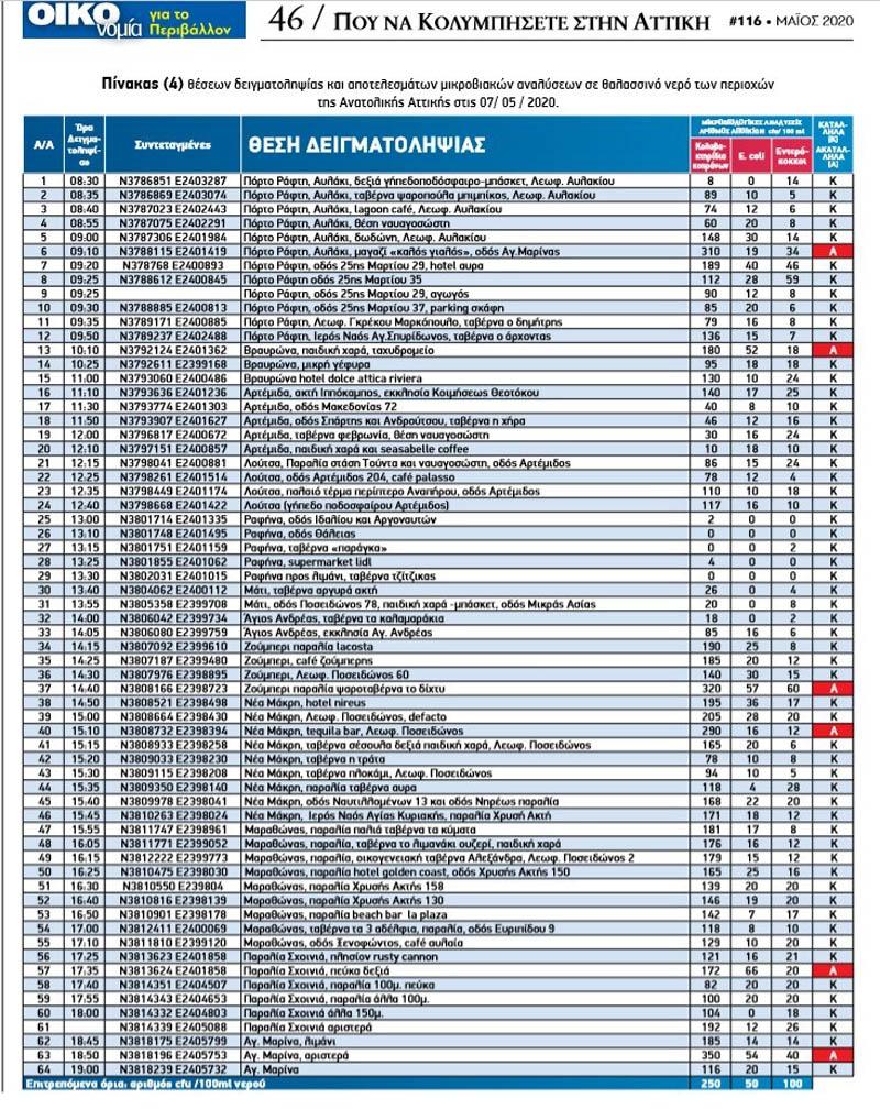Δημοσιεύτηκε και επίσημα όλη η λίστα με τις ακατάλληλες παραλίες της Αττικής για το 2020, σύμφωνα με το Πανελλήνιο Κέντρο Οικολογικών Ερευνών (ΠΑΚΟΕ).