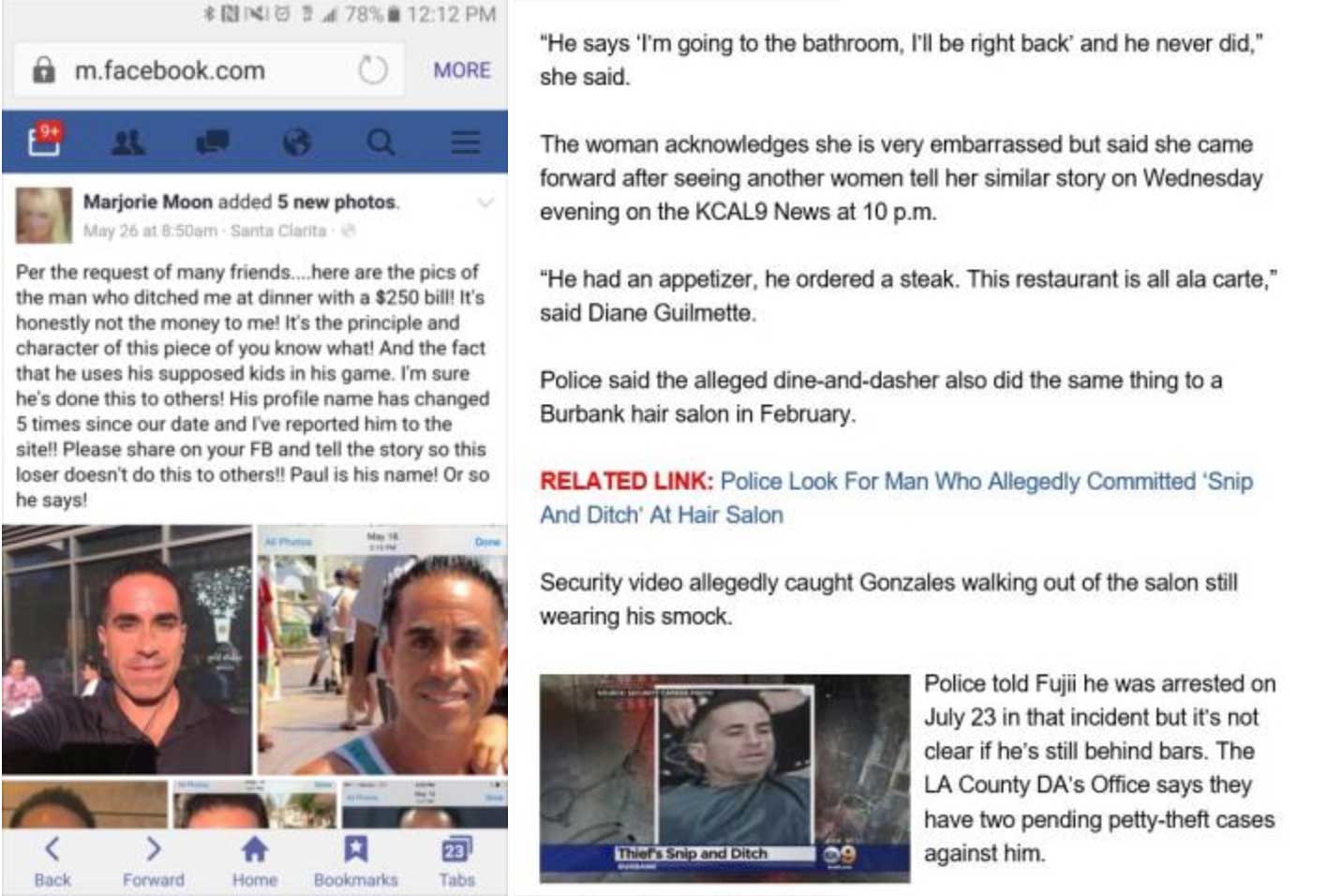 Δύο χρόνια κράτησε η δράση του και ήταν γνωστός στο Λος Άντζελες ως «το ραντεβού που τρώει και τρέχει» (dine-and-dash dater).