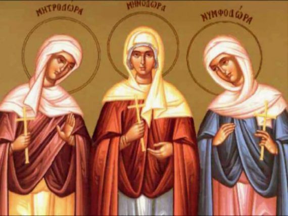 Βιογραφία Οι Αγίες Μηνοδώρα, Μητροδώρα και Νυμφοδώρα ήταν αδελφές και κατάγονταν από τη Βιθυνία. Η λάμψη της παρθενίας και η ωραιότητα των ψυχών και των σωμάτων της έκαναν της τρεις αδελφές να είναι καύχημα των χριστιανών ενώ οι φροντίδες και οι συνήθειες του κόσμου δεν της απασχολούσαν. Η μόνη της φροντίδα ήταν «μετὰ αἰδοῦς καὶ σωφροσύνης κοσμεὶν ἑαυτάς, ἢ ἐν πλέγμασιν ἢ χρυσῶ ἢ μαργαρίταις ἢ ἰματισμῶ πολυτελεῖ» (Α’ προς Τιμόθεον, β’ 9). Δηλαδή φρόντιζαν να στολίζουν τον εαυτό τους με συστολή και σωφροσύνη και όχι με φιλάρεσκα πλεξίματα των μαλλιών τους ή με χρυσά ή μαργαριτένια κοσμήματα ή με ρούχα πολυτελή.