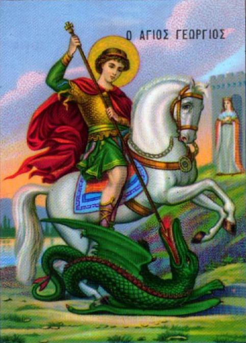 Ο Άγιος Γεώργιος είναι από τους δημοφιλέστερους Αγίους σε όλο τον χριστιανικό κόσμο. Ονομάζεται, επίσης, Μεγαλομάρτυς και Τροπαιοφόρος. Ειδικά στη χώρα μας, δεν υπάρχει περιοχή που να μην έχει εξωκλήσι ή εκκλησία αφιερωμένη στη μνήμη του, ενώ το όνομα Γεώργιος είναι από τα πλέον συνηθισμένα.Κατά τους συναξαριστές και την Ιερή Παράδοση, ο Γεώργιος γεννήθηκε μεταξύ 275 και 281 στη Νικομήδεια της Βιθυνίας. Ο πατέρας του Γερόντιος καταγόταν από πλούσια οικογένεια της Καππαδοκίας και ήταν στρατιωτικός και Συγκλητικός. Η μητέρα του Πολυχρονία καταγόταν από τη Λύδδα της Παλαιστίνης. Και οι δύο γονείς του Γεωργίου είχαν βαπτιστεί χριστιανοί.Μετά τον θάνατο του πατέρα του, η οικογένεια του Αγίου μετακόμισε στη Λύδδα, την πατρίδα της μητέρας του. Σε νεαρή ηλικία, ο Γεώργιος ακολούθησε στρατιωτική καριέρα και εντάχθηκε στο Ρωμαϊκό Στρατό. Γρήγορα ξεχώρισε για τις ικανότητες και την ανδρεία του κι έλαβε το αξίωμα του Τριβούνου. Ο αυτοκράτορας Διοκλητιανός τον προήγαγε σε Δούκα (διοικητή) και Κόμη (συνταγματάρχη) στο σώμα της αυτοκρατορικής φρουράς.