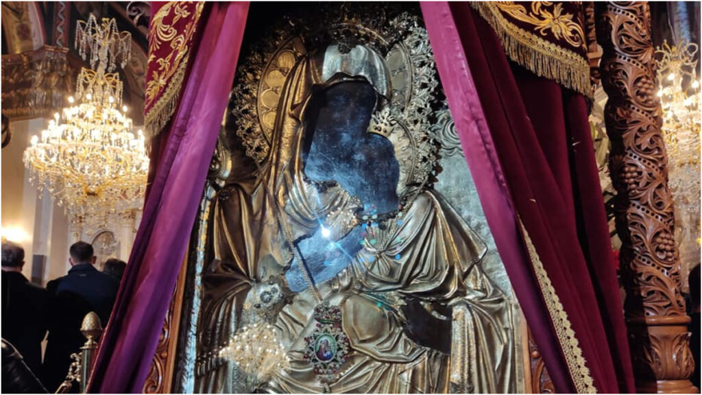 Καί νύν. Τή Θεομήτορος εικόνι προσπέσωμεν, καί ως Μητέρα Ιησού ικετεύσωμεν, ώς παρρησίαν έχουσαν ερμήν πρός τόν Υιόν, όν αφράστως έτεκε, τής φωνής επακούσαι, νύν εν στεναγμοίς ψυχής τών οικτρώς δεομένων Ως συμπαής παράσχου πρός Χριστού, ρώσιν σωμάτων, ψυχή τε τήν ίασιν.
