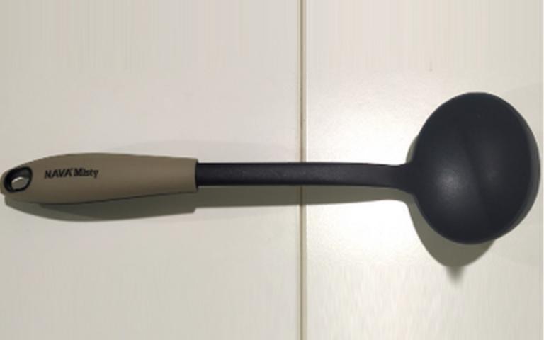 Πρόκειται για κουτάλα σούπας nylon, προέλευσης Κίνας, με την εμπορική ονομασία «NAVA Misty» (33cm), μαύρου και γκρι χρώματος, με αριθμό παρτίδας (Lot) 111.13.03.18.