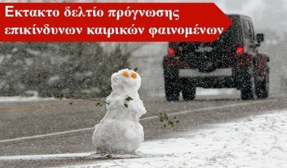 Σε «κίτρινο» συναγερμό μπαίνει η Εθνική Μετεωρολογική Υπηρεσία για τις επόμενες 72 ώρες με έκτακτο δελτίο πρόγνωσης επικίνδυνων καιρικών φαινομένων με κύρια χαρακτηριστικά τις χιονοπτώσεις, τη ραγδαία πτώση της θερμοκρασίας και τους ισχυρούς βόρειους-βορειοανατολικούς ανέμους.