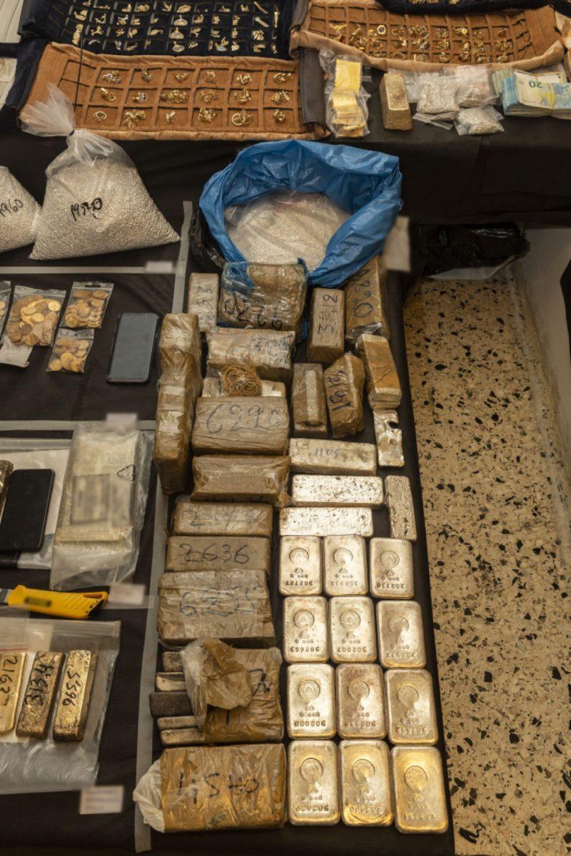 Στην κατοχή των δυο κυκλωμάτων βρέθηκαν και κατασχέθηκαν “…πλάκες χρυσού, βάρους 30,4 κιλών, αξίας 545.000 ευρώ, πλάκες και καθαρός χρυσός, βάρους 6,2 κιλά, αξίας 235.600 ευρώ, 513 κιλά ασήμι, αξίας 220.590 ευρώ, 1121 χρυσές λίρες, αξίας 330.695 ευρώ, 360 χρυσά νομίσματα, 18 πολύτιμες πέτρες, δαχτυλίδι με πολύτιμη πέτρα, αξίας 56.900 ευρώ, το χρηματικό ποσό των 850.000 ευρώ και επιταγές αξίας 60.500 ευρώ.”