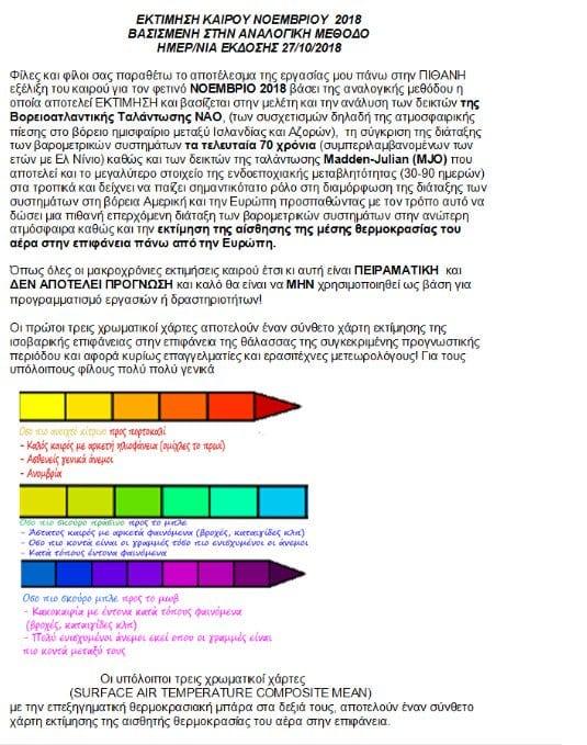 «ΕΚΤΙΜΗΣΗ ΚΑΙΡΟΥ NOEMBΡΙΟΥ 2018 ΒΑΣΙΣΜΕΝΗ ΣΤΗΝ ΑΝΑΛΟΓΙΚΗ ΜΕΘΟΔΟ HMEΡ/NIA ΕΚΔΟΣΗΣ 27/10/2018