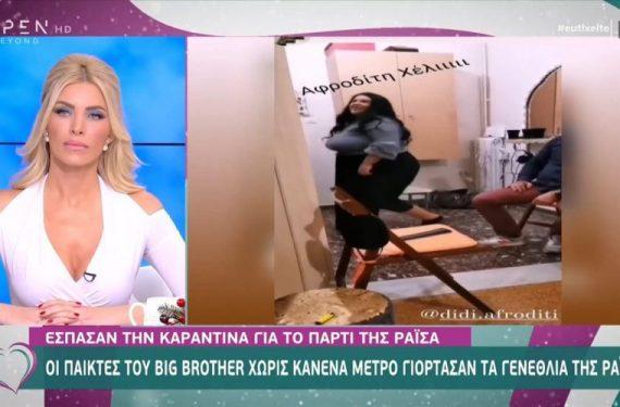Μπορεί ο κορωνοϊός να «καλπάζει» στην Ελλάδα και τα πράγματα να είναι πολύ δύσκολα, ωστόσο, παίκτες του «Big Brother», που αποχώρησαν από το παιχνίδι συγκεντρώθηκαν για να γιορτάσουν τα γενέθλια της τελευταίας αποχωρήσασας την Παρασκευή, της Ραΐσα.