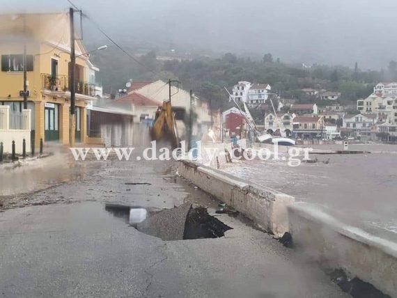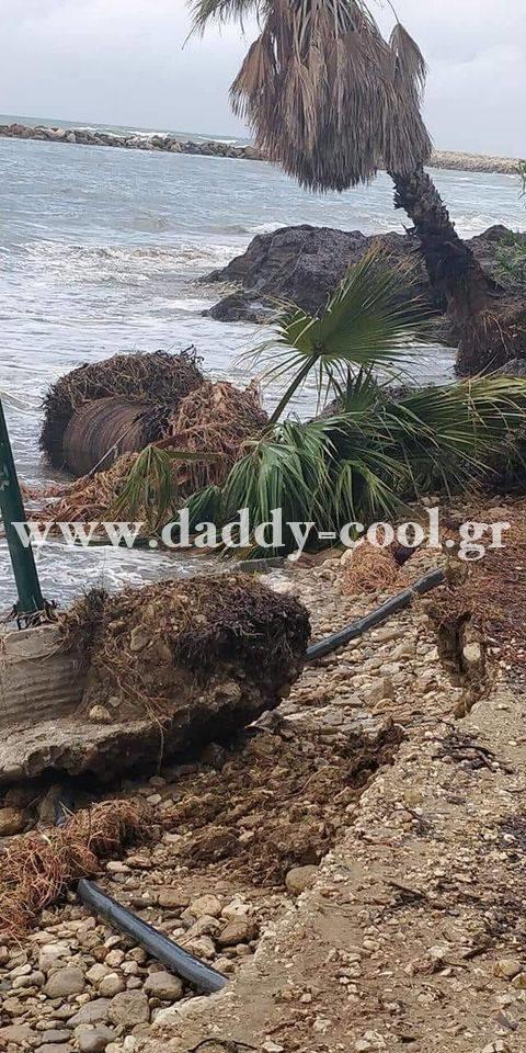 Η Πυροσβεστική κάνει αντλήσεις υδάτων από ισόγεια και άλλους χώρους. Δύο αμμουδερές παραλίες στη Βασιλική εξαφανίστηκαν.