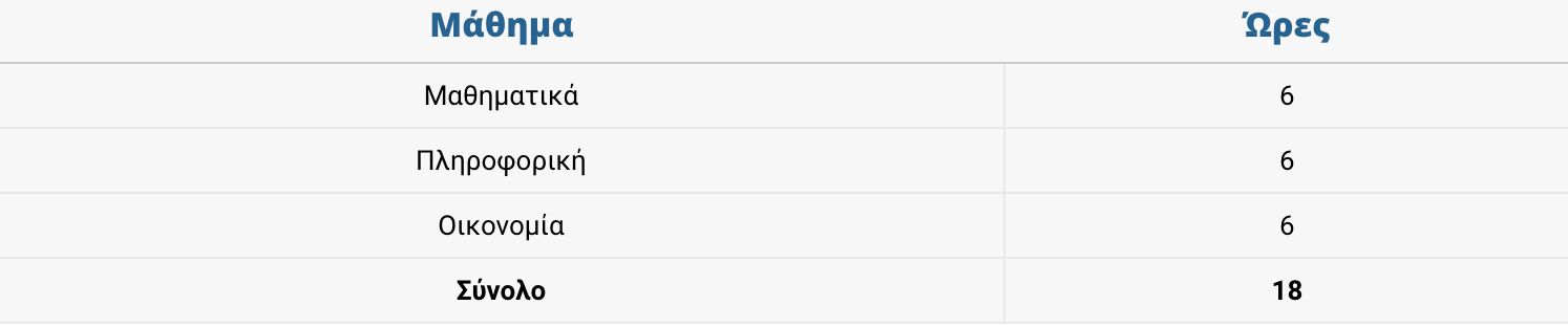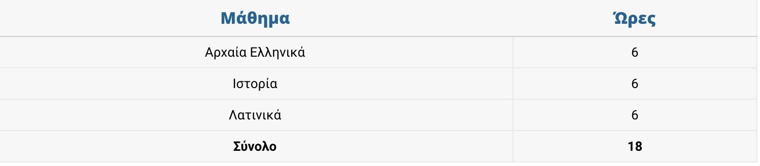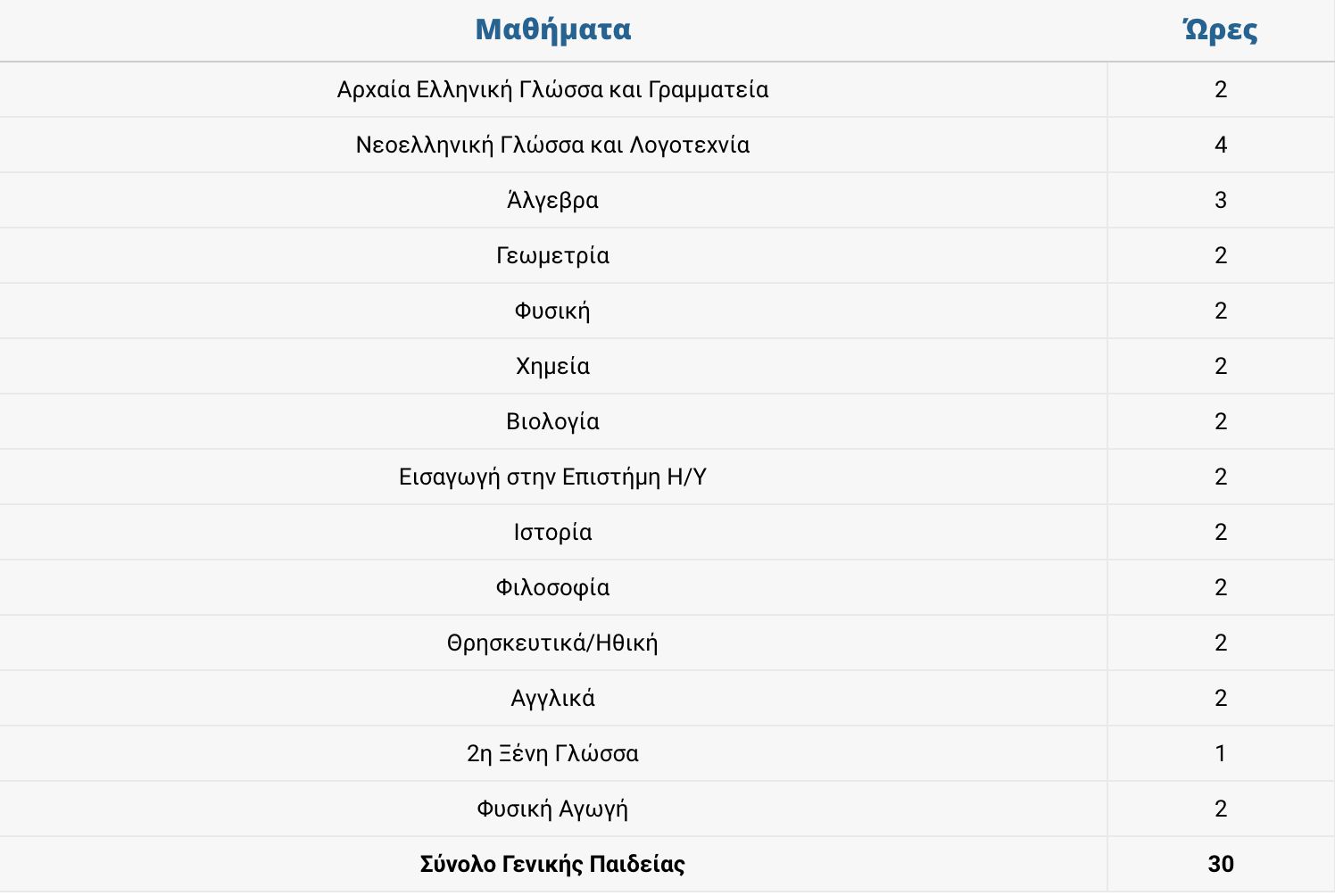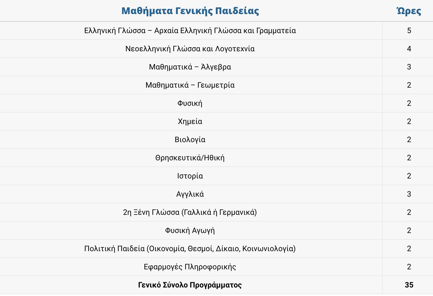 Ωρολόγιο Πρόγραμμα Α’ Τάξης Ημερήσιου Γενικού Λυκείου