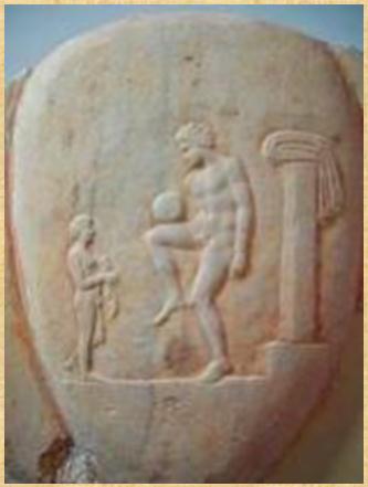 Ανάγλυφο του 4ου π.Χ. αιώνα που βρίσκεται στο Αρχαιολογικό Μουσείο των Αθηνών εικονίζει έναν έφηβο να παίζει τη μπάλα με το πόδι, μπορεί να μας βεβαιώσει ότι οι πρόγονοί μας έπαιζαν κάποιο ποδοσφαιριστικό παιχνίδι.