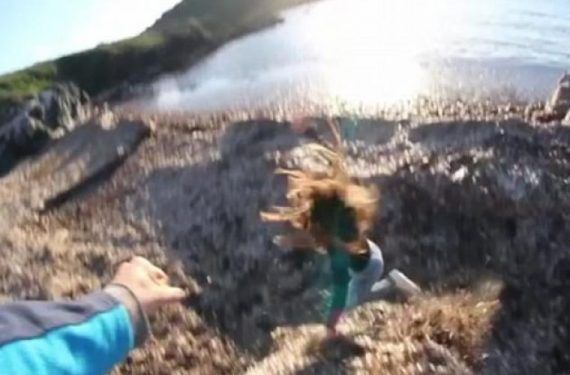 Σύμφωνα με τη Daily Mail, που δημοσιεύει και το βίντεο, το ζευγαράκι βρίσκεται σε μια περιοχή που έχει υπέροχη και ρομαντική θέα, ώσπου το όμορφο κορίτσι του ζητάει να την βγάλει φωτογραφία. Τη μια στιγμή χαμογελάει κρατώντας το χέρι του και σε δευτερόλεπτα το χέρι του ακουμπάει στο στήθος της και την πετάει πάνω σε μυτερές πέτρες!