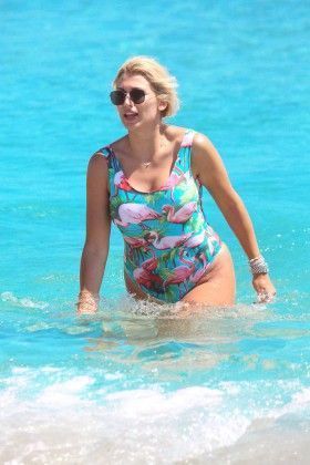 Η ζουμερή παρουσιάστρια τράβηξε τα βλέμματα πάνω της, με το print ολόσωμο μαγιό της, που προφανώς είναι κι αυτό μέρος του προβλήματος, αφού δεν μοιάζει να την κολακεύει.