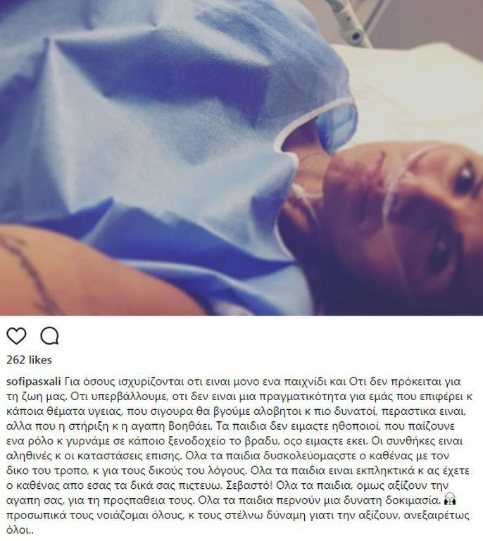 Από το κρεβάτι του νοσοκομείου η Σόφη πόσταρε τη φωτογραφία κι έστειλε το μήνυμα της χωρίς να αποκαλύπτει τον λόγος της νοσηλείας της παρά το γεγονός ότι όλου τη ρωτούσαν τι έχει συμβεί.