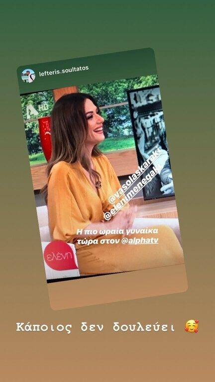 Ο Λευτέρης Σουλτάτος από την άλλη φαίνεται να παρακολούθησε όλη τη συνέντευξη της συζύγου του, κι αυτό φάνηκε μέσα από ένα story που ανέβασε κι έκανε reshare στο δικό της account και η Βάσω.