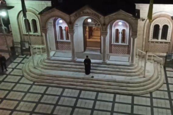 Οι πιστοί συμμετείχαν και αυτοί από τα μπαλκόνια τους ψάλλοντας μαζί με τον ιερέα.