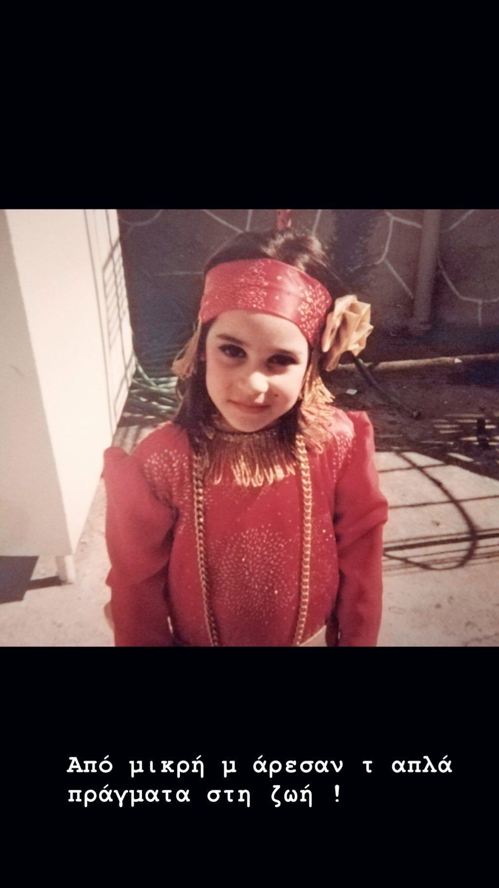Η ίδια μοιράστηκε μία φωτογραφία από την παιδική της ηλικία στα social media, με την αυτοσαρκαστική λεζάντα «Από μικρή μου άρεσαν τα απλά πράγματα στη ζωή».