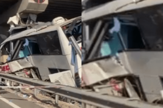 Η σύγκρουση ήταν τόσο σφοδρή που η κολώνα έκοψε κάθετα στη μέση το λεωφορείο σύμφωνα με το ieidiseis.gr , όπως φαίνεται και από τις φωτογραφίες, που κάνουν τον γύρο του κόσμου.